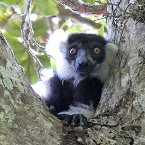 The small island of Nosy Mangabe is notable because it has been protected since 1965. It is home to a number of rare animal species, most notably the critically endangered black-and-white ruffed lemur, which were introduced to the island specifically for their protection, and is the only place in the bay area where you can see them. This island is also your best bet to see the endangered Brookesia peyrierasi, the second smallest chameleon species.
